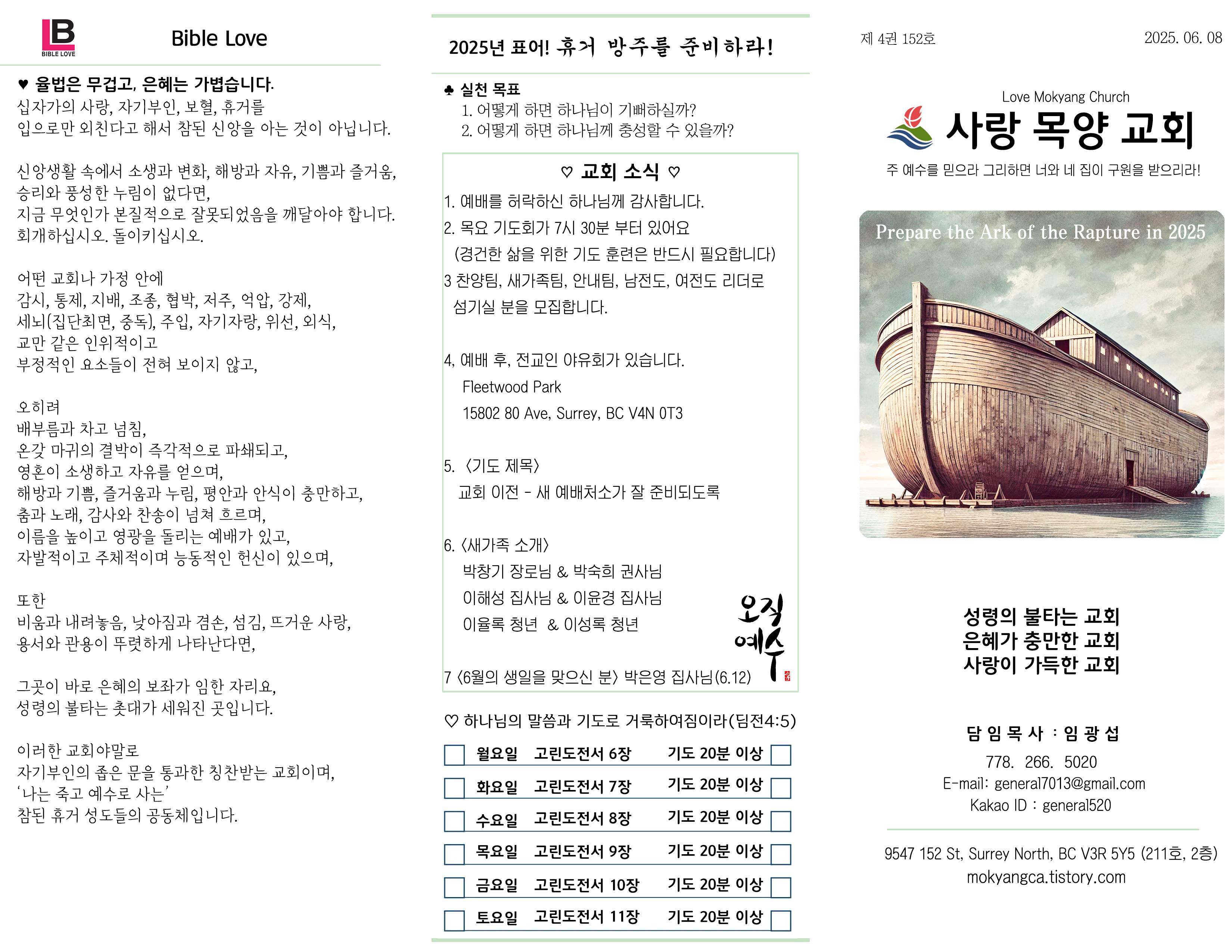 2025 06. 08 밴쿠버 사랑 목양교회 주보