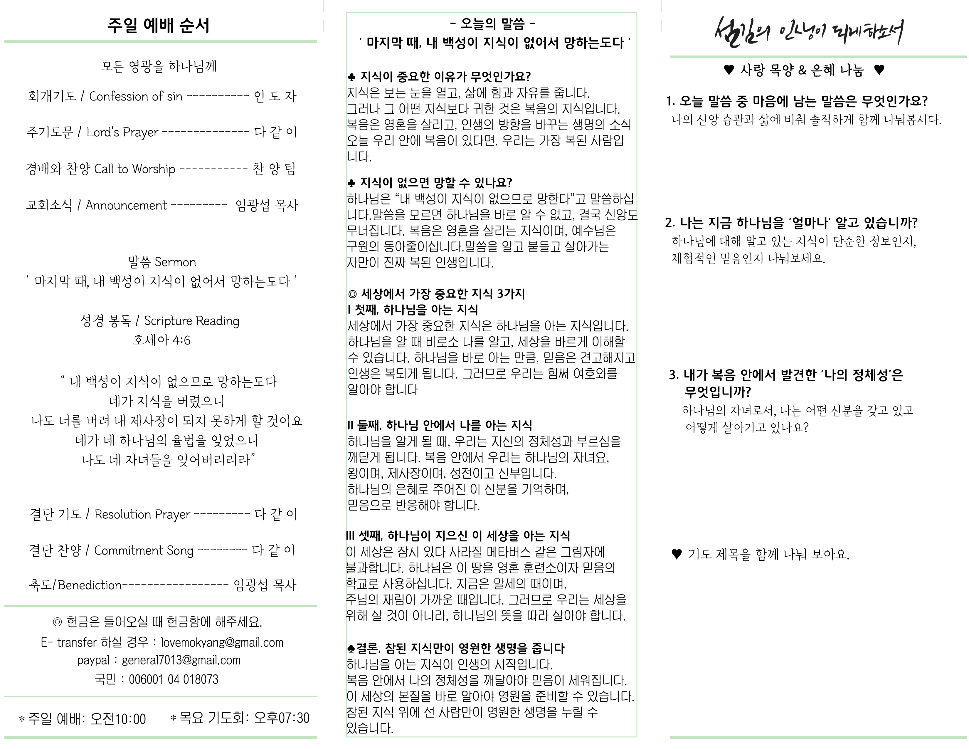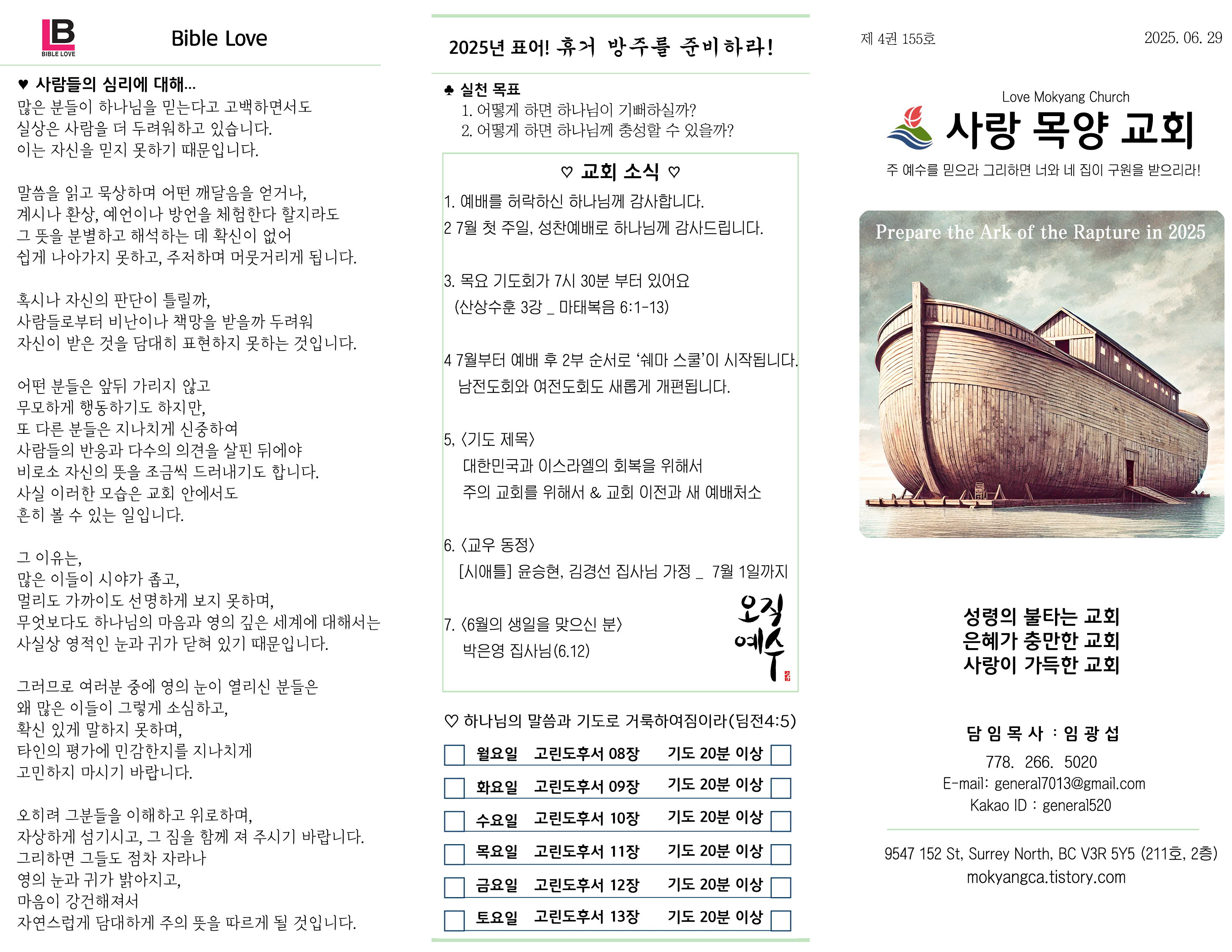 2025 06. 29 밴쿠버 사랑 목양교회 주보
