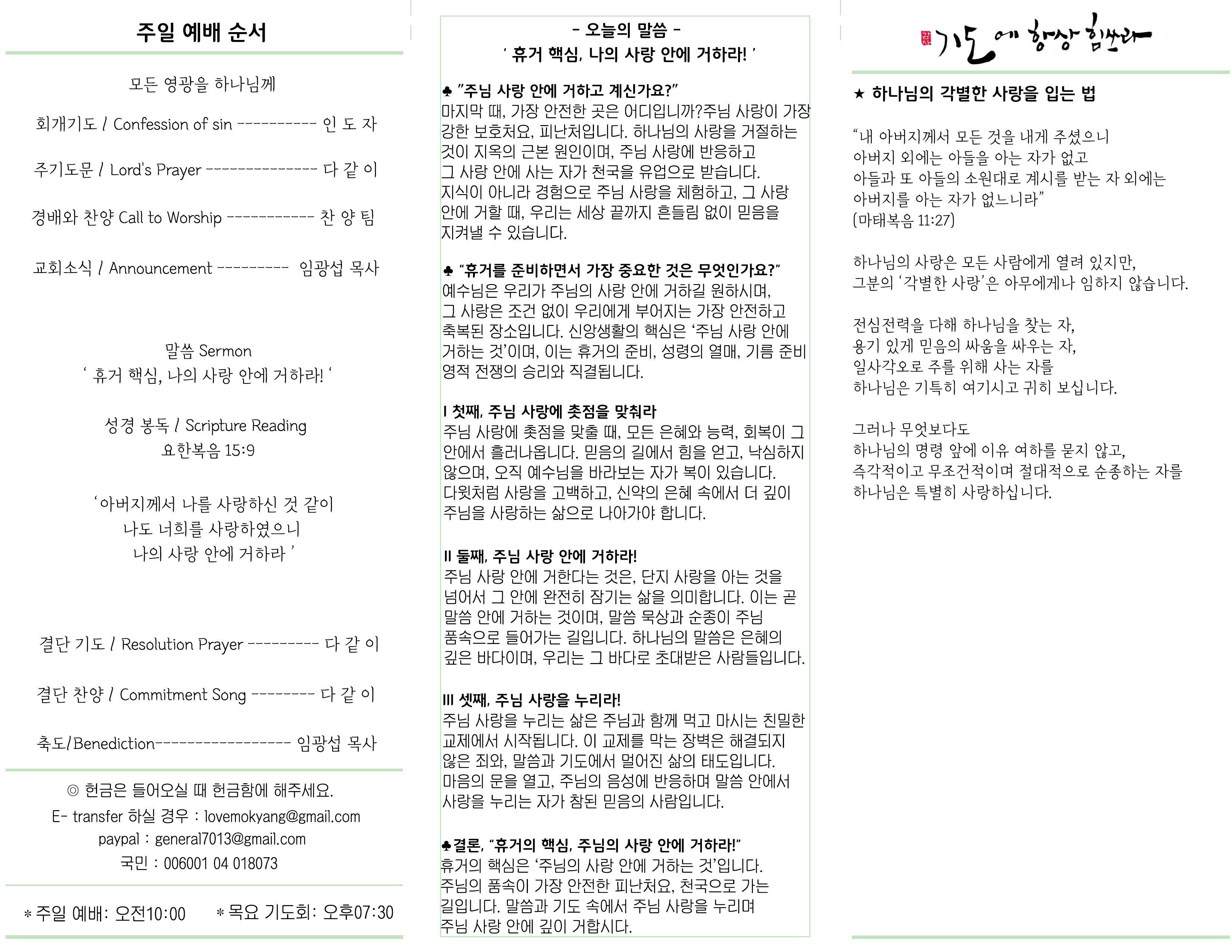 2025 08. 17 밴쿠버 사랑 목양교회 주보