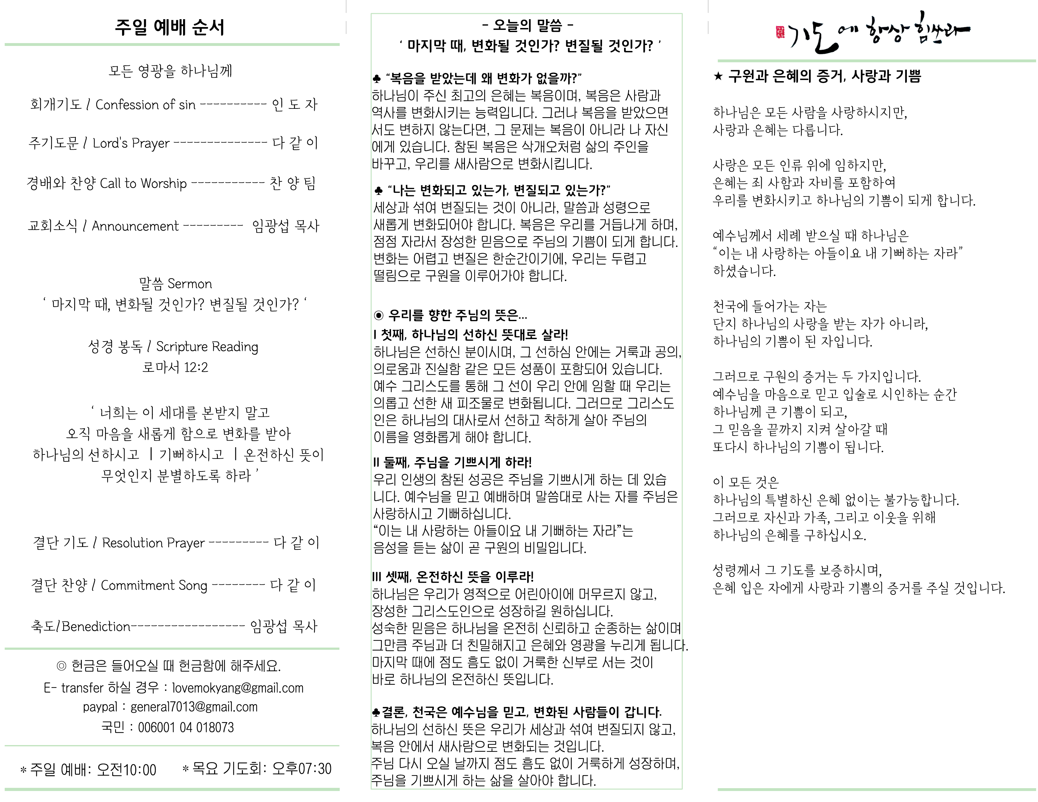 | 2025 08. 10 밴쿠버 사랑 목양교회 주보 (0) | 2025.08.20 |