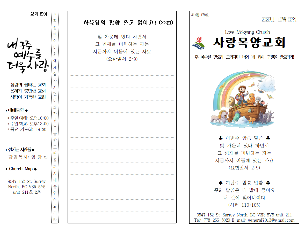 2025 10. 05 밴쿠버 사랑 목양교회 주보