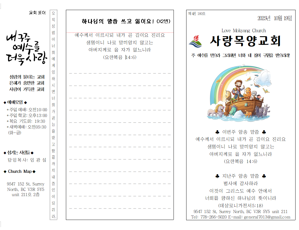 2025 10. 19 밴쿠버 사랑 목양교회 주보