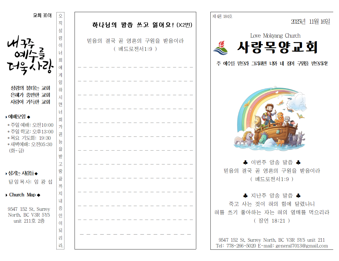 2025 11. 16 밴쿠버 사랑 목양교회 주보